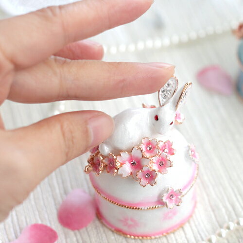 ジュエリーボックス うさぎと桜B(ホワイト) ピィアース 宝石箱 置物 小物入れ スワロフスキー キラキラ 誕生日プレゼント アクセサリーケース 卒業 入学 可愛い ピックアップ クリスマス 新生活 ギフト 母の日 PICALS ピカルス